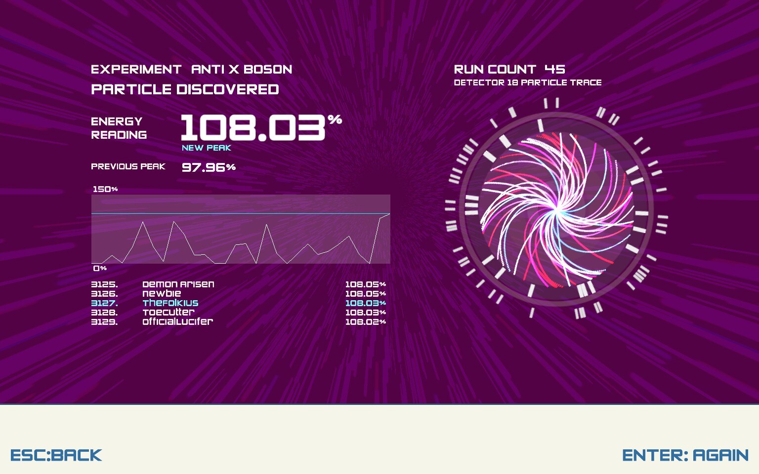 "Boson X" — это динамичный экшен-раннер, разработанный Иэном МакЛарти и Джоном Керни, действие которого происходит внутри массивного ускорителя частиц. Игрокам предстоит набирать скорость и генерировать высокоэнергетические столкновения, чтобы открывать новые частицы, мчась по дезориентирующему субатомному миру без привычных полов и потолков. Основной геймплей требует точного тайминга и быстрых рефлексов, пока вы совершаете квантовые прыжки по вращающимся платформам, стремясь к критической скорости. Вы сможете выбрать одного из трех персонажей-физиков на 18 сложных уровнях, разработанных для максимальной проверки ваших навыков. В игре есть таблицы лидеров и достижения Steam для соревновательных игроков, отслеживающих свой научный прогресс. Примечательно, что Boson X отказывается от типичных элементов раннеров, таких как пауэр-апы, монеты и системы опыта, полностью сосредоточившись на геймплее, основанном исключительно на мастерстве. Ротационная механика создает уникальное пространственное испытание, поскольку окружение постоянно меняется вокруг вас. Ваша конечная цель — достичь скорости, достаточной для открытия неуловимой частицы Бозон X. Обратите внимание, что игра содержит мигающие огни, которые могут повлиять на фоточувствительных игроков.