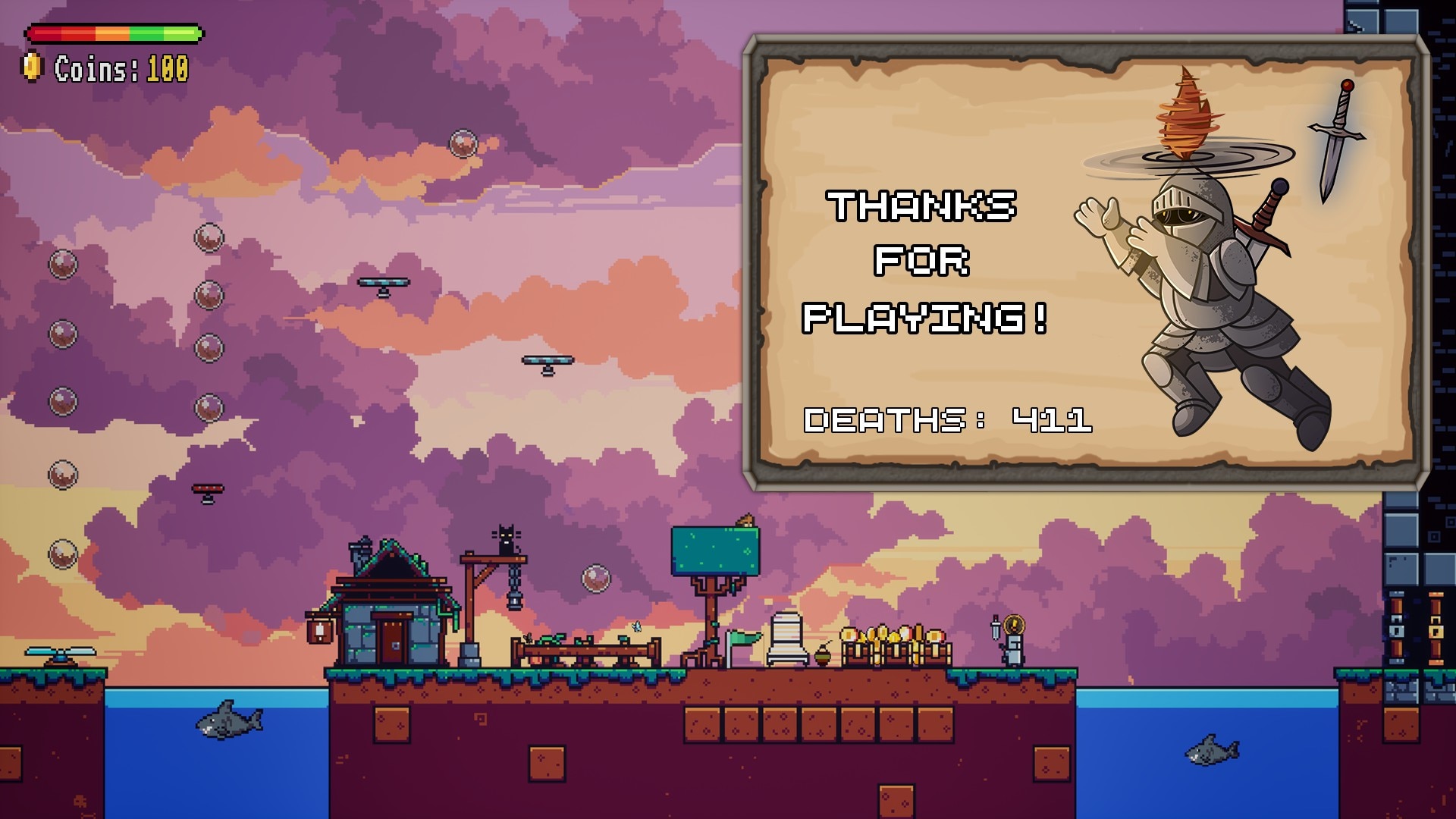 Отличительной особенностью игры является уникальная система полета, встроенная в шлем рыцаря, позволяющая парить и скользить по сложным участкам. Это воздушное перемещение придает традиционному платформеру новый смысл, позволяя вам творчески подходить к преодолению коварных препятствий. Повествование в игре представлено стильным пиксельным артом, передающим эстетику классических платформеров, и дополнено атмосферным саундтреком, который усиливает эффект от приключений.