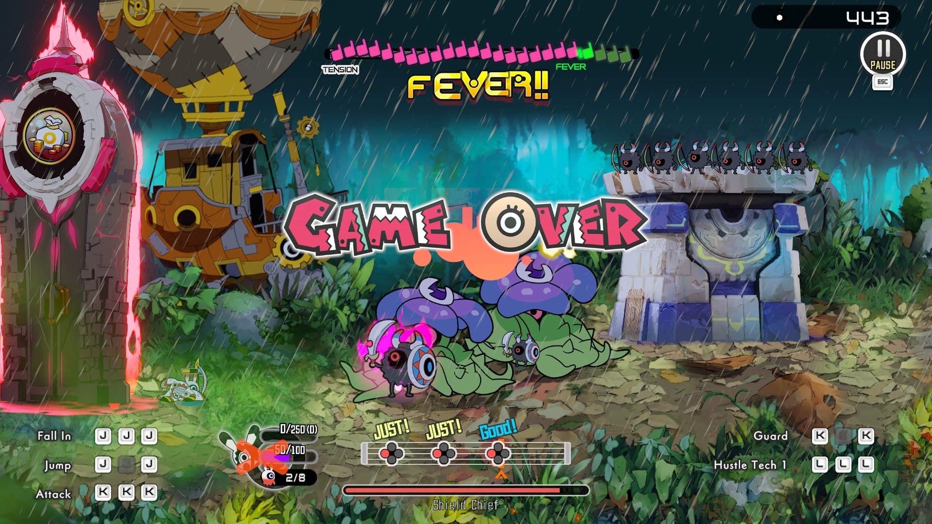 Бой требует точной синхронизации, когда вы под ритм запоминающегося саундтрека побеждаете врагов, принимая стратегические решения о позиционировании, отступлении и отдаче команд. В игре используется нарисованная вручную 2D-анимация, которая придает индивидуальность и жизнь движениям и действиям каждого персонажа. В roguelike каждое путешествие к Эверфатеру ставит новые задачи, побуждая к повторным попыткам, несмотря на неизбежные неудачи.