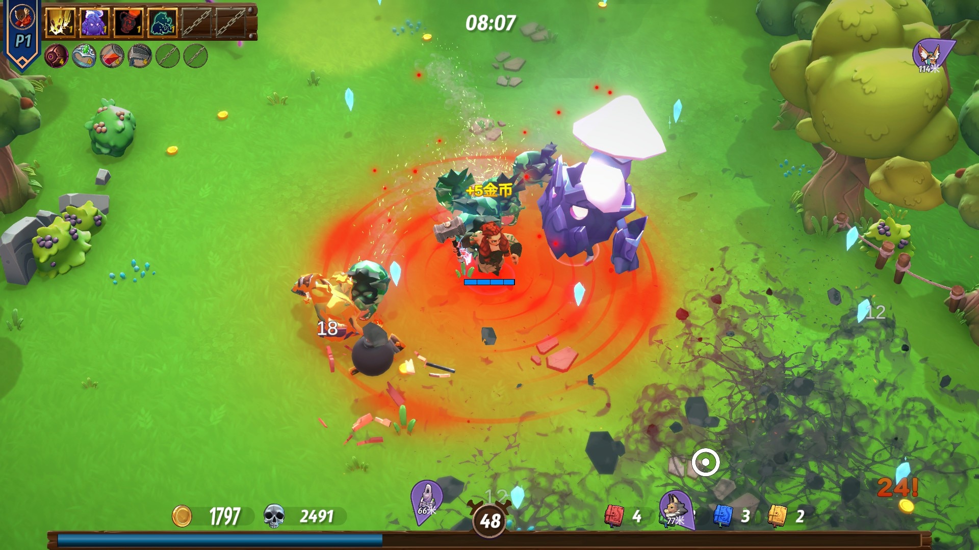 "Royal Revolt Survivors" - это нисходящая ролевая игра, разработанная Team Warriors и объединяющая бои в стиле Survivor с франшизой Royal Revolt. Вам предстоит защищать свое королевство от вторжения сил зла, выбирая из списка воинов, каждый из которых обладает уникальными способностями и стилями игры, требующими различных тактических подходов. В игре вас ждут напряженные сражения в реальном времени, в которых вы столкнетесь с сотнями врагов с разнообразными моделями движения и атак, а кульминацией станут сложные схватки с боссами. Вы можете экспериментировать с многочисленными комбинациями оружия и предметов, создавая мощные комплекты, которые становятся сильнее с каждым прохождением разнообразных арен, наполненных динамичными целями и неожиданными поворотами. В одиночной игре можно полностью пройти все испытания, а в кооперативном режиме до 4 игроков могут объединиться и пройти все испытания вместе. Бой требует стратегического мышления и выбора времени, когда вы открываете улучшения и складываете способности, чтобы выжить во все более сложных волнах. Арены визуально отполированы очаровательным дизайном персонажей и окружением, демонстрирующим высококачественную графику игры. Каждый забег предлагает высокую реиграбельность благодаря различным вариантам выбора персонажа, комбинациям способностей и рандомизированным задачам. Играя в одиночку или с друзьями, вам понадобятся острые рефлексы и слаженная командная работа, чтобы противостоять разлагающей тьме, угрожающей вашему королевству.
