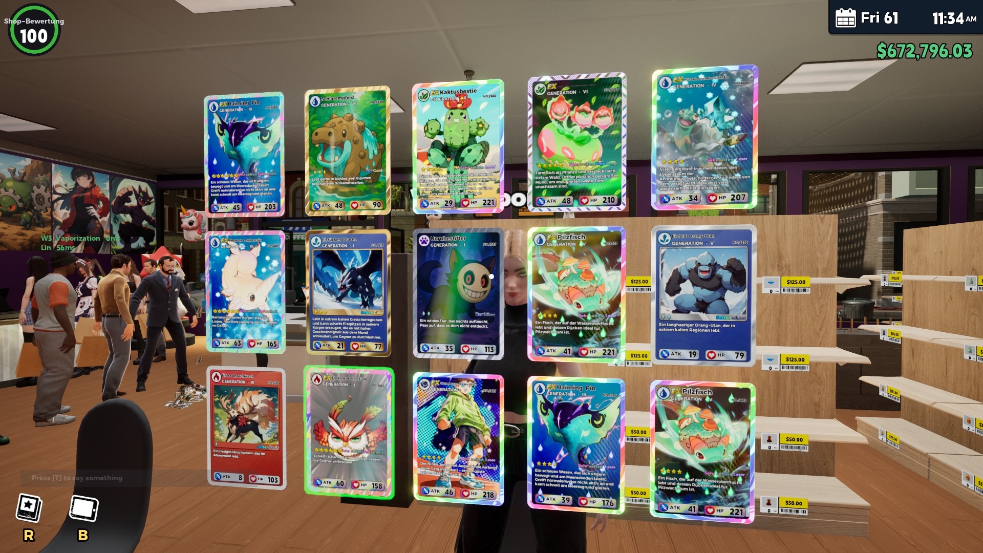 "Card Shop Simulator Multiplayer" - это казуальная игра-симулятор, разработанная ShaneGame, в которой вам предстоит управлять собственным магазином торговых карт. Вам предстоит создать и управлять магазином карт Pukmoe, стратегически организуя полки и наборы карт, чтобы создать оптимальные условия для покупателей. Основной игровой процесс вращается вокруг продажи пачек карт, чтобы получать прибыль и расширять бизнес.