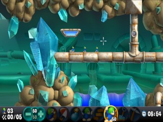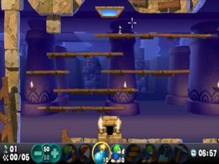 Оригинальная Lemmings была переделана для PSP с новой графикой. В этой головоломке вы проводите группу леммингов через все более сложные уровни. Существами нельзя управлять напрямую, но вы можете назначать им навыки, такие как дайвинг (копание вниз), башинг (пробивание горизонтально), строительство и т.д., чтобы они достигли конца уровня невредимыми.