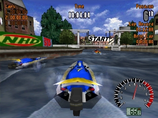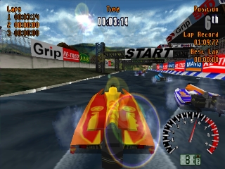 Aqua GT - это гоночная игра для моторных лодок. В ней есть три режима: Чемпионат, Аркада и Два игрока.