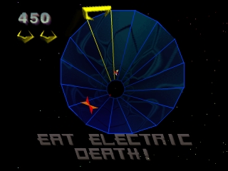 В игре Tempest X3 для PlayStation вы управляете клешней, которая ползет по внешнему краю ряда геометрических трубчатых конструкций, стреляя вниз или в туманную пустоту космоса. Из ядра этой пустоты к вашему кораблю движутся плавкие шары, ракеты, пульсары, танкеры и другие опасные инопланетяне и инопланетные артефакты. Как только вы очистите экран, вы вылетите в пустоту и перейдете на следующий уровень. Остерегайтесь шипов по мере продвижения.