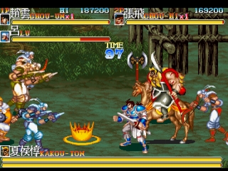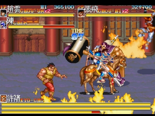 Tenchi wo Kurau II, использующая в качестве фона мангу Tenchi wo Kurau (основанную на истории Romance of the Three Kingdoms), также является сиквелом Dynasty Wars (Tenchi wo Kurau в Японии). Игра была выпущена компанией Capcom в 1992 году, в эпоху, когда они также выпустили несколько похожих горизонтально-прокручиваемых экшенов, таких как Final Fight, Captain Commando, King of Dragons и Knights of the Round.