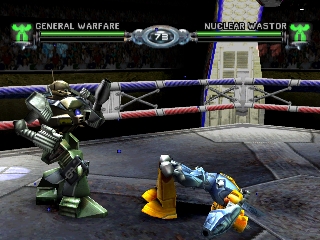 Перед тем как отправиться на арену, игроки могут выбрать 12 различных роботов. По таким названиям, как Slamurai, Sir Haxalot и General Warfare, легко понять, что Mattel Interactive стремится придать им немного шутливый характер. Хотя названия не слишком серьезны, бои не столь комичны: роботы бросают в противников все свое оружие, чтобы добиться уничтожения. Оружие это самое разнообразное: от мечей до бомб и пушек Гатлинга. Каждый робот начинает игру с разным набором оружия, и в зависимости от режима, в котором вы играете, их атаки можно менять местами.
